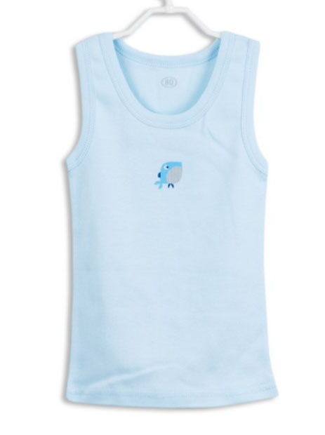 Трикотажная ясельная майка с небольшим принтом для девочки. Модель полномерная.